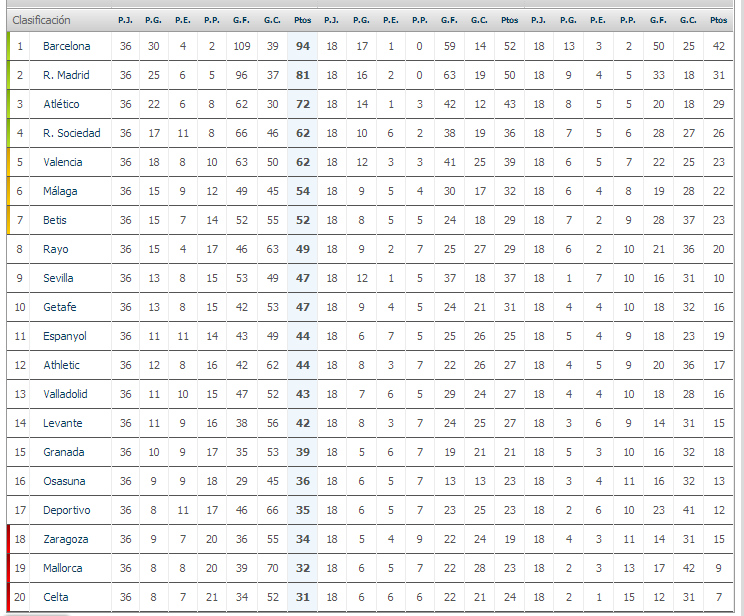 Tabla de clasificaciones